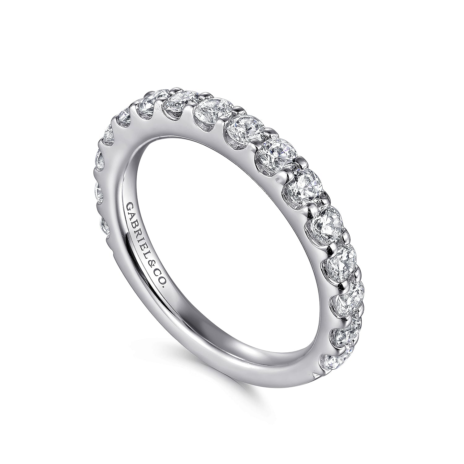 Ladies 14K White Gold shared Prong Diamond Wedding Band containing Sixteen (16) Round Diamonds having an approximate total weight of .98ct Color GH/Clarity SI2y