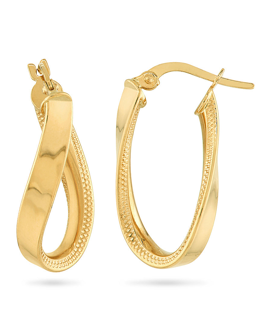 Ladies 14K Yellow Gold Earrings Textured Edges Oval Wave