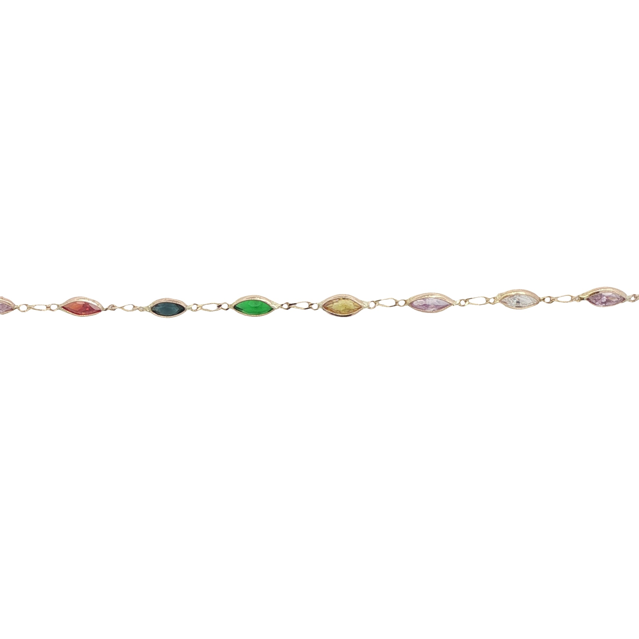 Ladies Preowned 14K Yellow Gold Bracelet with Marquise Shape Multi Colored Stones