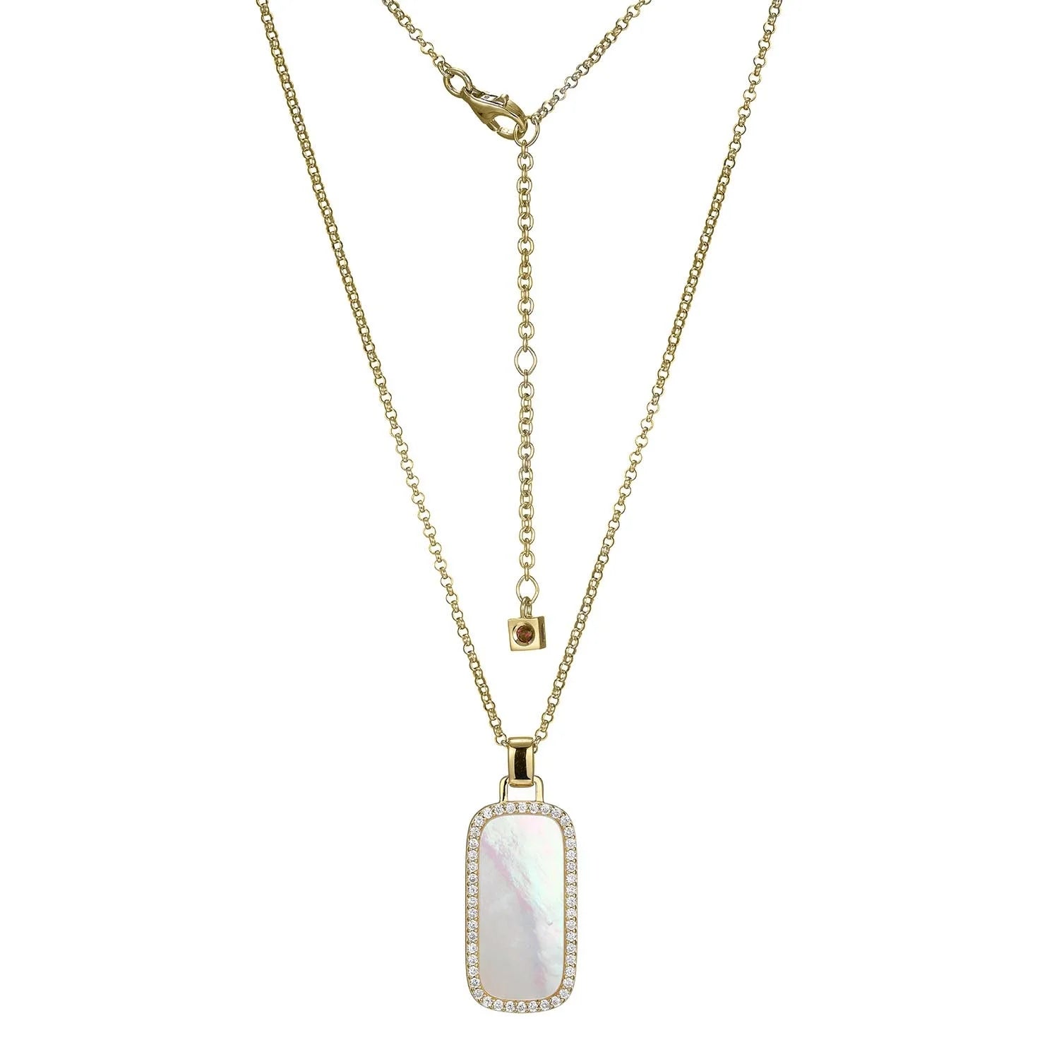Ladies Sterling Silver with Yellow Gold Plating Pendant Rectangle Mother of Pearl with Cubic Zirconia