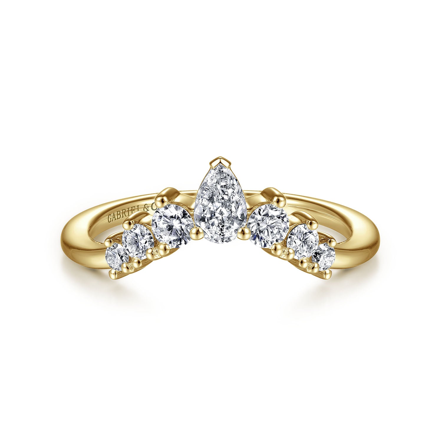 Ladies 14K Yellow Gold Curved Pear and Round Diamond Wedding Band containing a total of Seven (7) Diamonds having an approximate total weight of .48ct Color GH/Clarity SI2