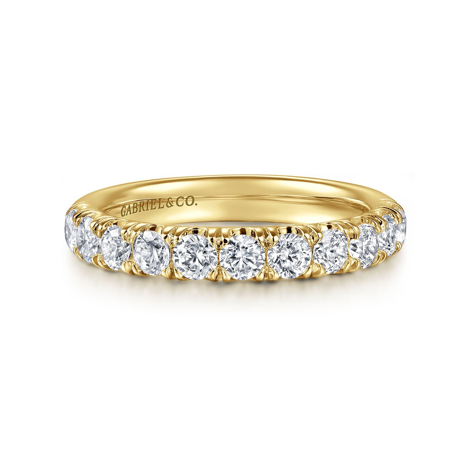 Ladies 14K Yellow Gold Diamond Wedding Band Eleven (11) French Pave' Diamonds having an approximate total weight of .95ct Color GH/Clarity SI2