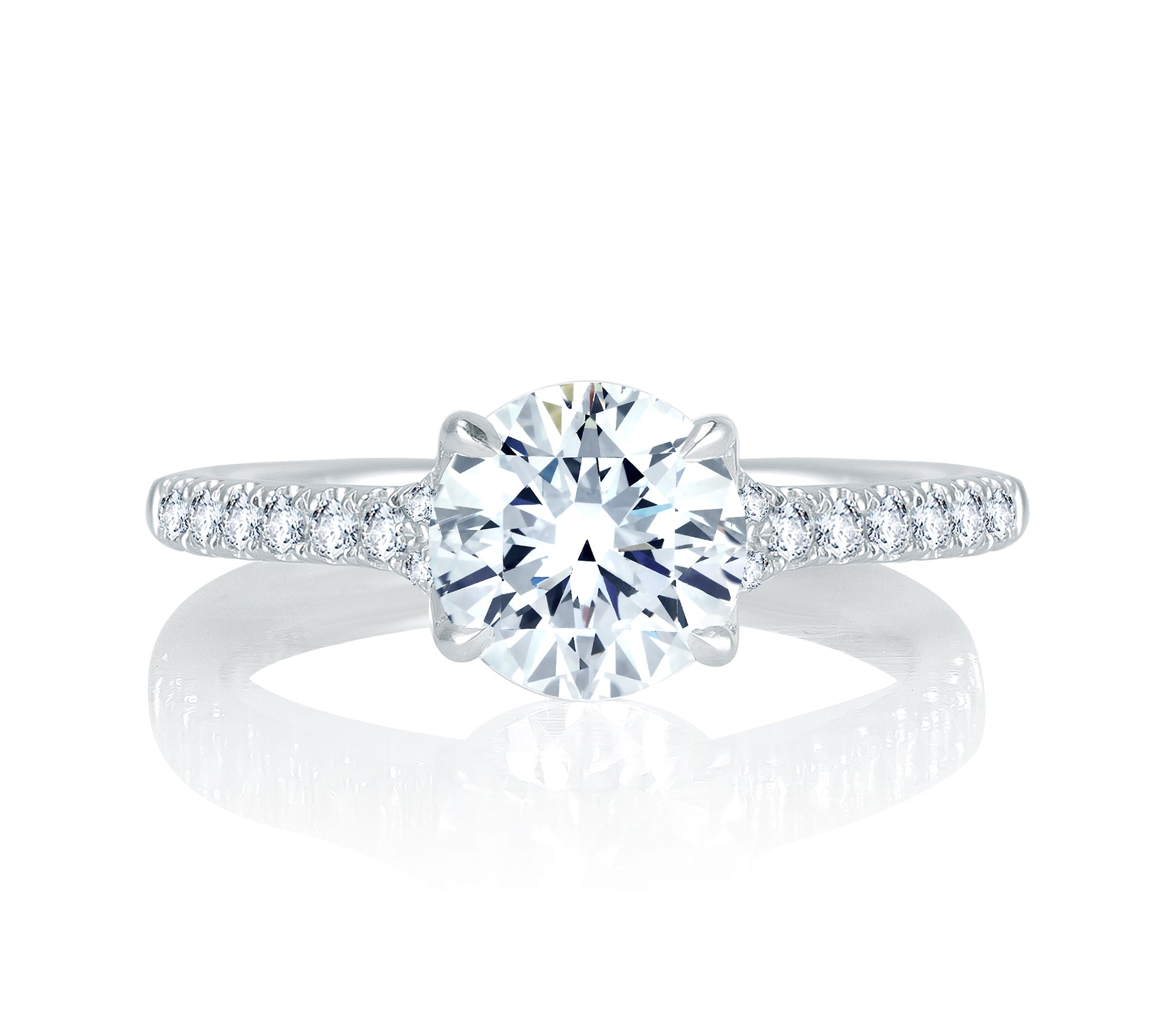 Ladies 14K White Gold Diamond Semi Mount split Shank with Diamonds on Head containing Thirty Eight (38) small Round Diamonds having an approximate total weight of 0.29ct Color G/Clarity SI Quilted