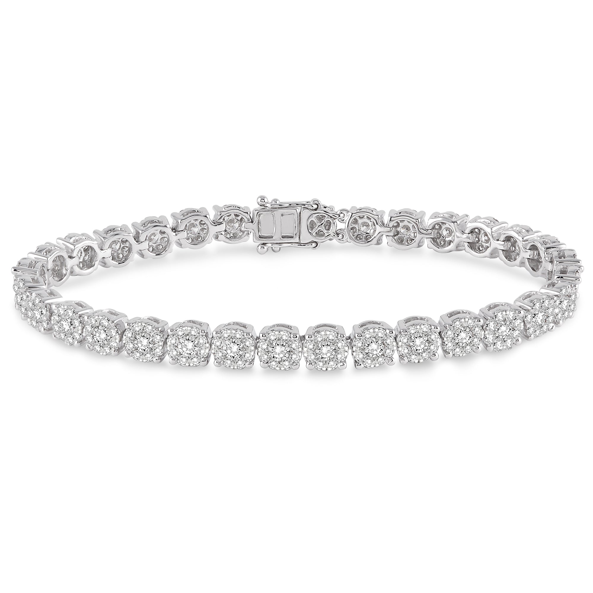 Ladies 14K White Gold Diamond Cluster Tennis Bracelet containing Three Hundred twenty-four Round Diamonds having an approximate total weight of 5.00ct.Color HI/Clarity SI2