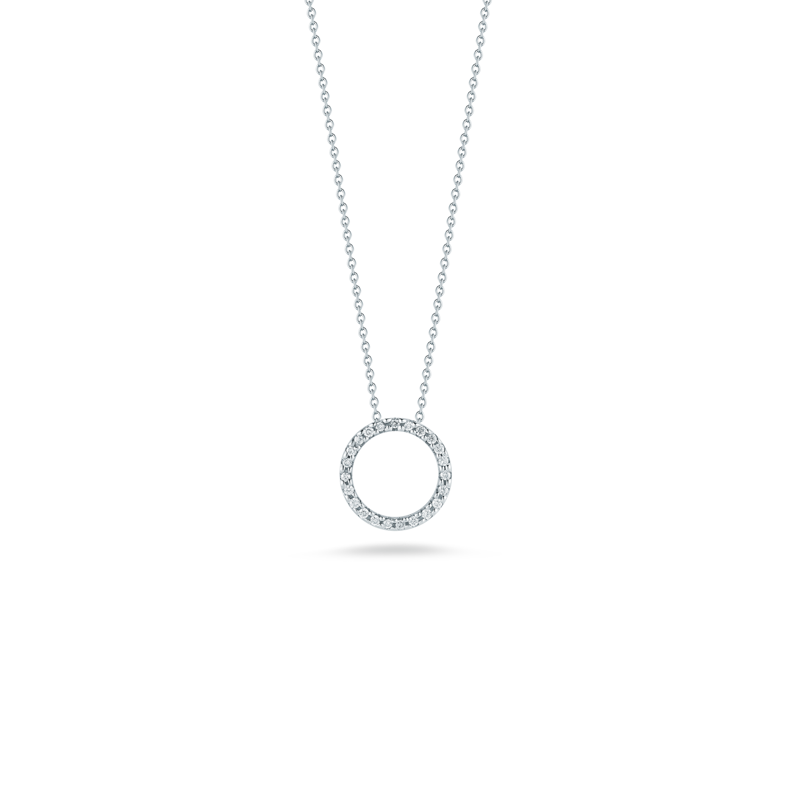 Ladies 18k White Gold Diamond Circle Necklace containing Twenty-Three (23) small Round Diamonds having an approximate total weight of 0.09cttw Color GH/Clarity SI