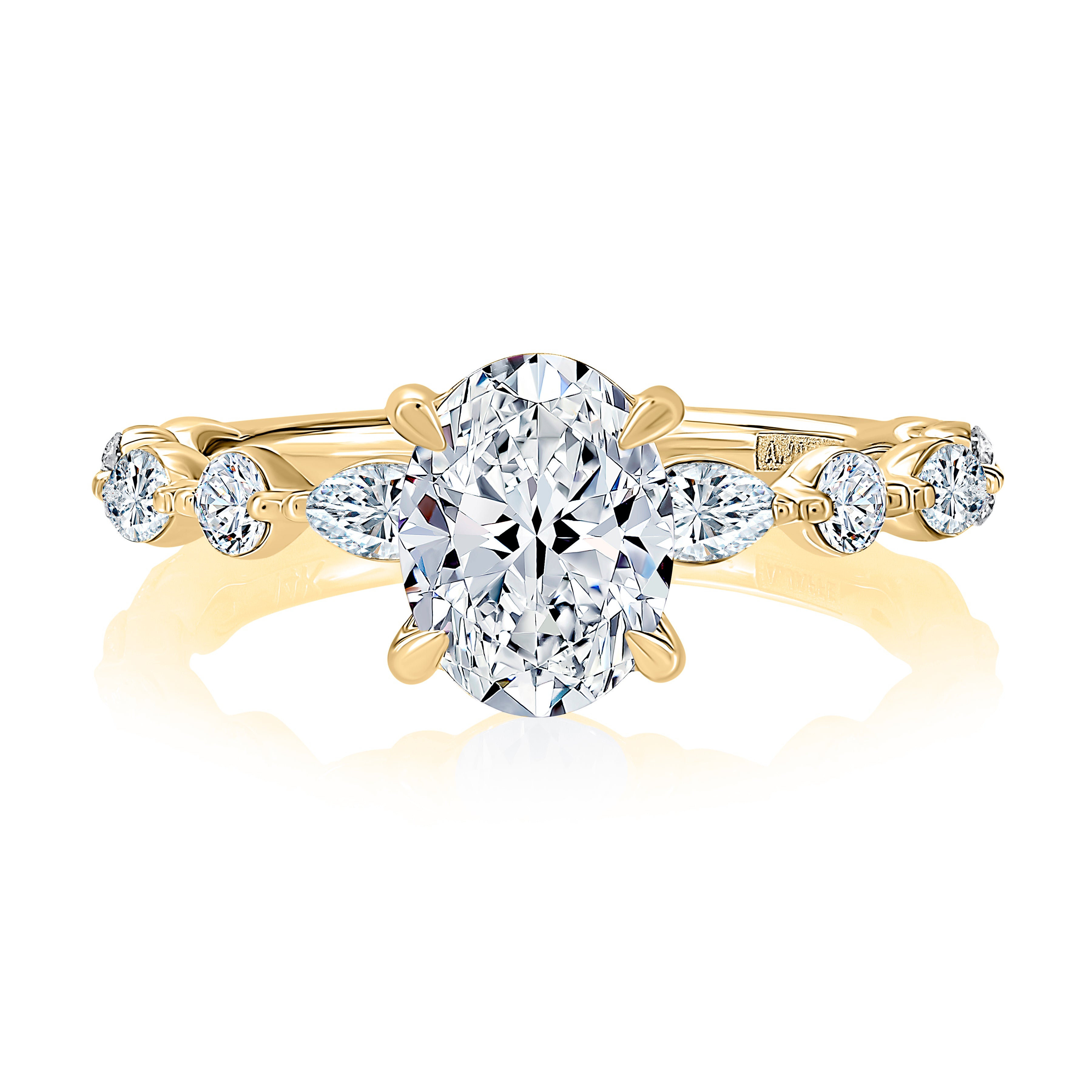 Ladies 14K Yellow Gold Semi Mount with alternating Diamonds Six (6) Marquise and Four (4) Rounds having an approximate total weight of 0.62ct Color G/Clarity SI
