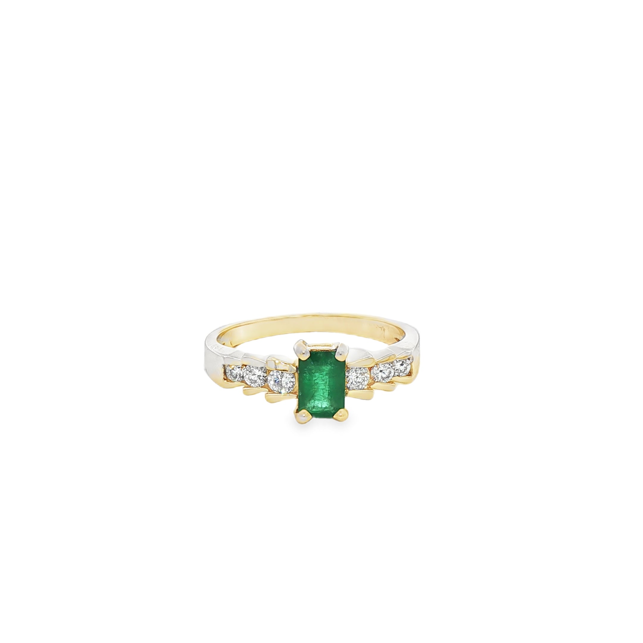 Ladies Preowned 14K Yellow Gold Ring containing one (1) Emerald and six (6) round diamonds having an approximate total weight of 0.20cttw Color H-I / Clarity SI2