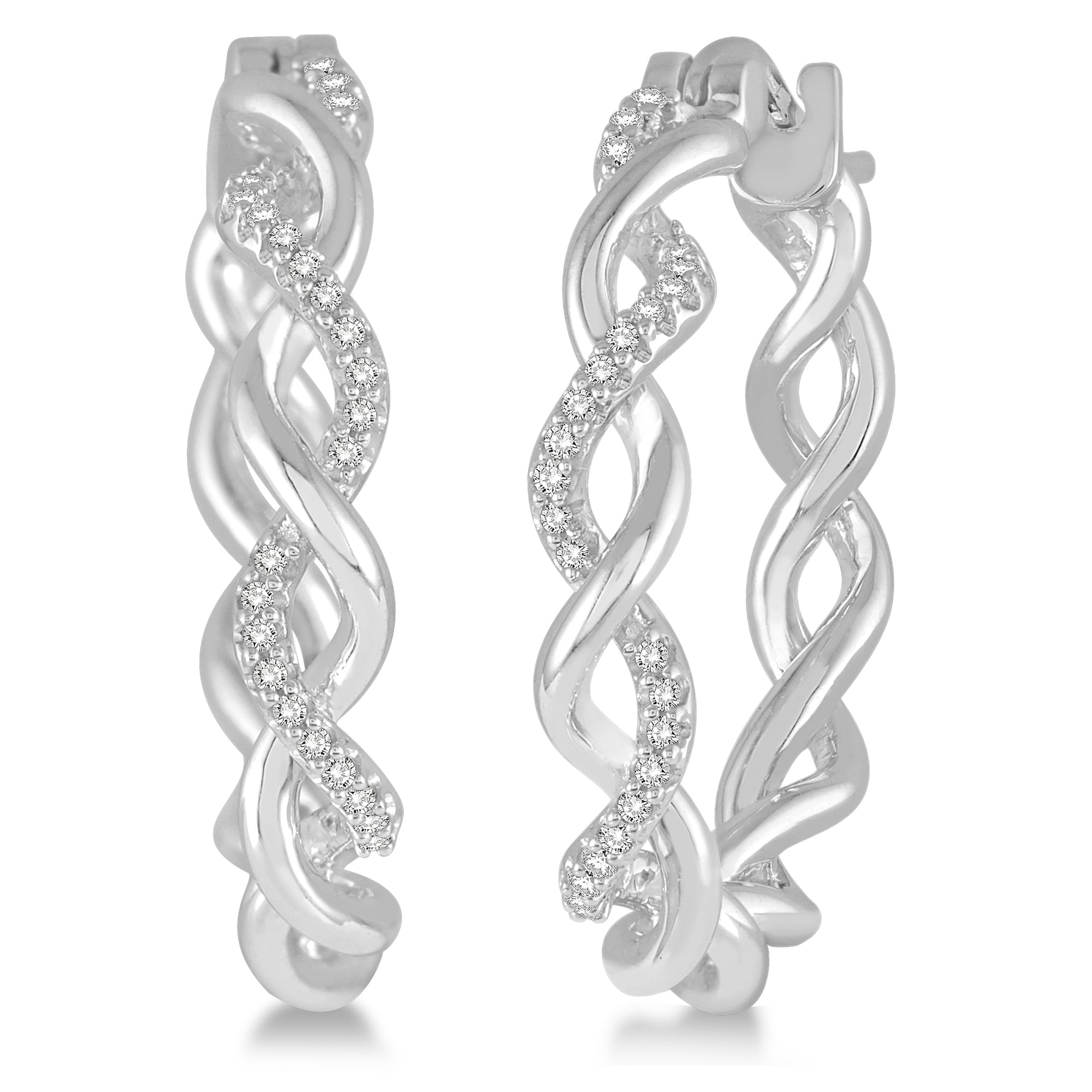 Ladies 14K White Gold Diamond Twist Hoop Earrings containing Forty (40) small Round Diamonds having an approximate total weight of .25ct Color H-I/Clarity SI2