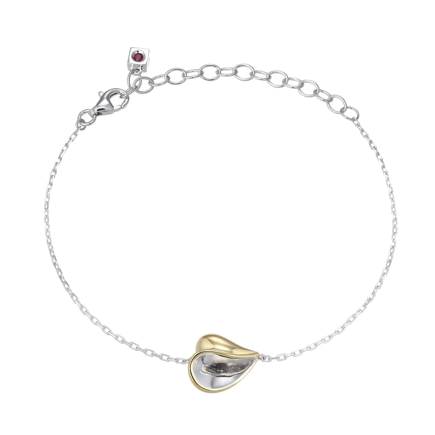 Ladies Sterling Silver Bracelet Heart with half Yellow Gold Plated