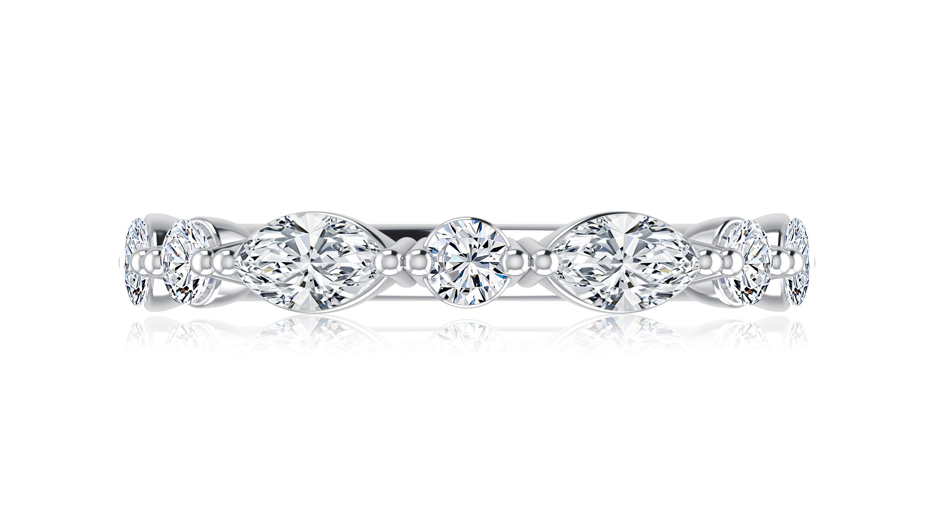Ladies 14K White Gold Wedding Band Single Prong containing four (04) Marquise diamonds and three (03) round diamonds having an approximate total weight of 0.80cttw Color G-H / Clarity SI2