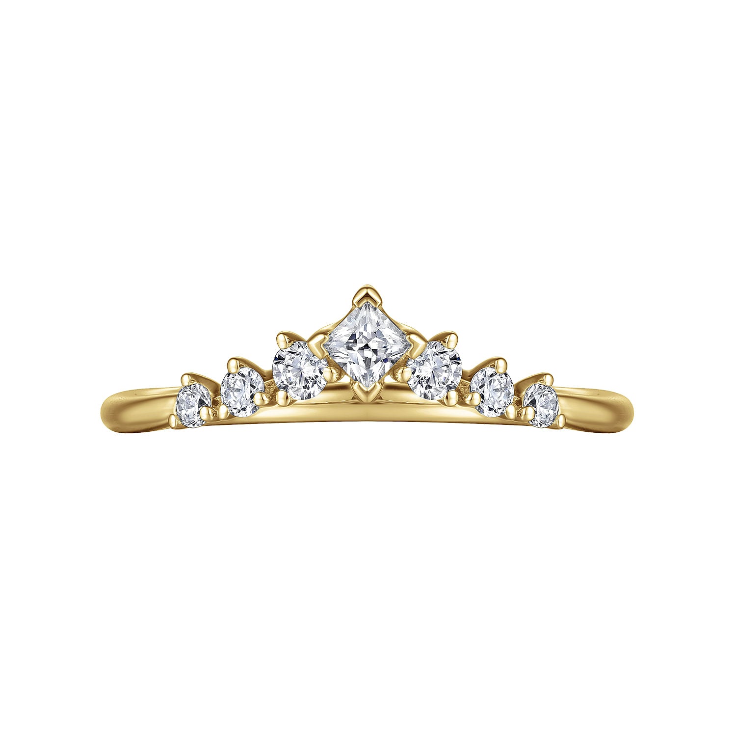 Ladies 14K Curved Yellow Gold Princess and Round Diamond Wedding Band containing a total of Seven (7) Diamonds having an approximate total weight of 0.29ct Color GH/Clarity SI2