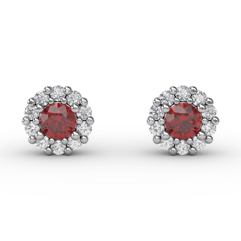Ladies 14K White Gold Earrings containing Twenty (20) small Round Diamonds having an approximate total weight of .30 cttw and Two (2) Ruby Stones having an approximate total weight of .60ct Golor G-H/Clarity SI1-VS2