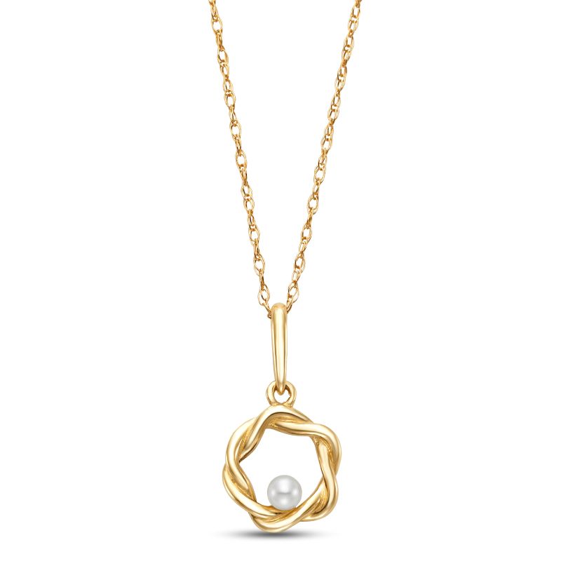 Ladies 14K Yellow Gold Circle Pendant containing one 2-2.5mm Fresh Water Pearl