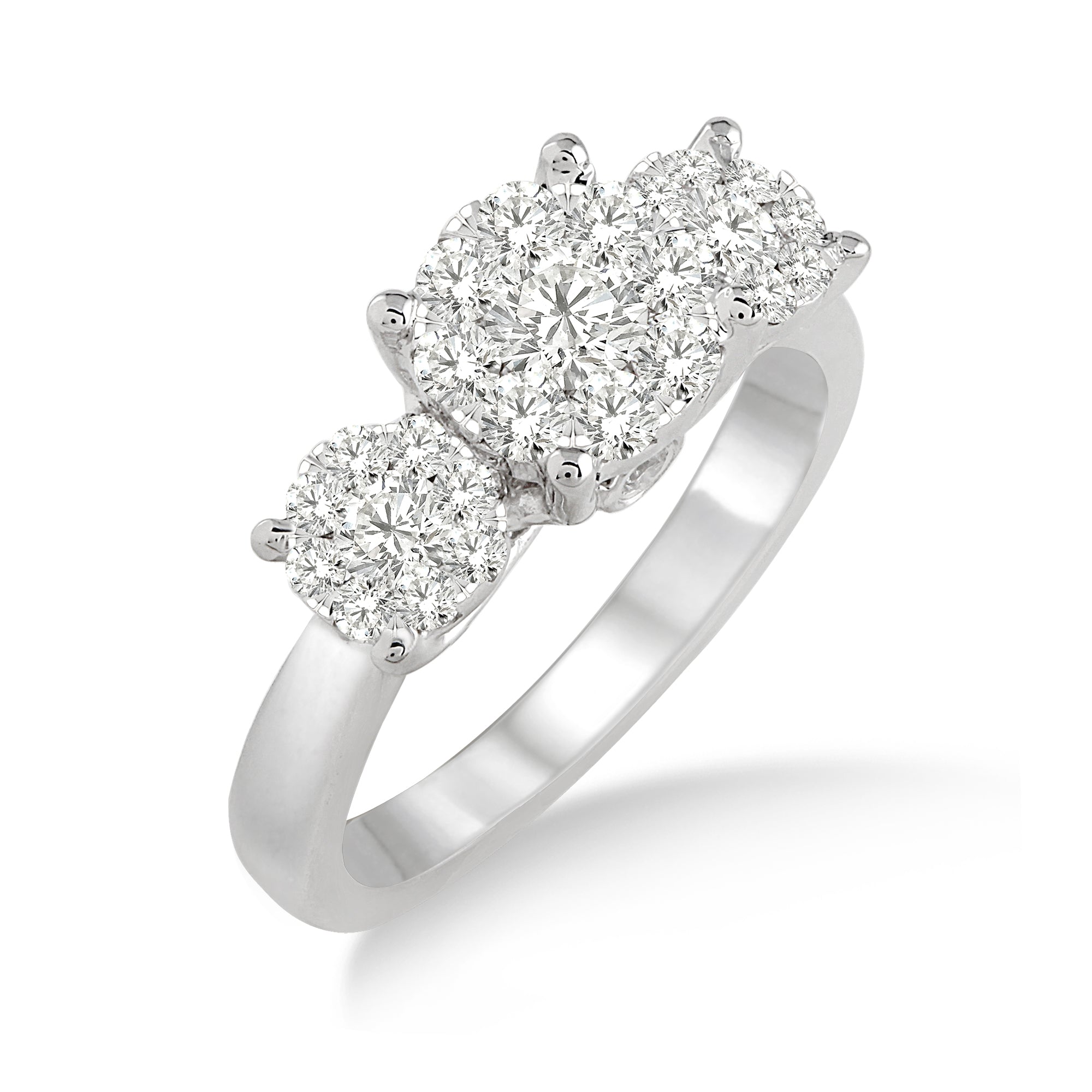 White Gold Ring three Diamond Clusters