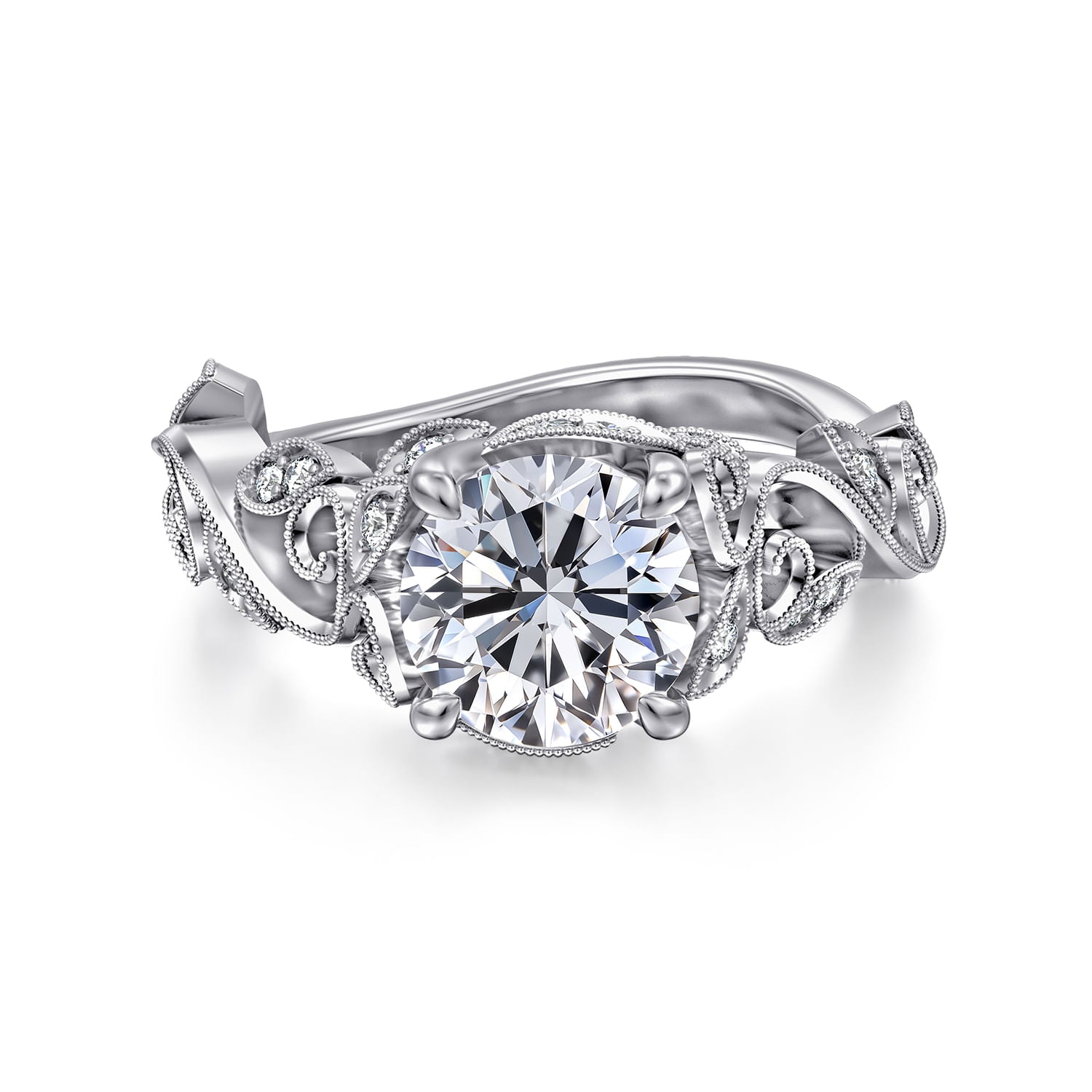 Ladies14k White Gold Floral Design Diamond Semi Mount containing Twenty-Two (22) small Round Diamonds having an approximate total weight of 0.15cttw Color GH/Clarity SI
