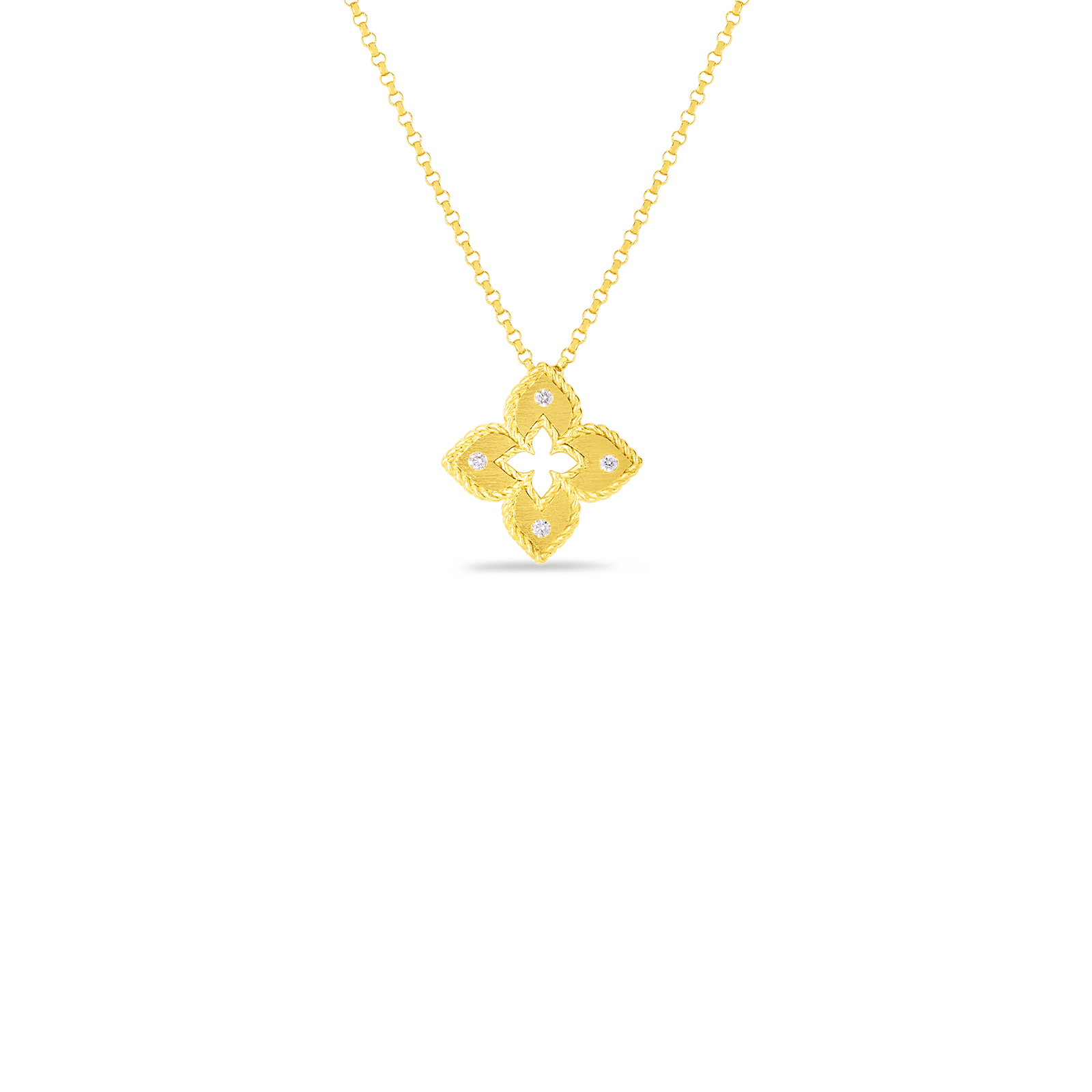 Ladies 18K Yellow Gold Diamond Petite Venetian Necklace containing Four (4) small Round Diamonds having an approximate total weight of 0.02cttw Color GH/Clarity SI