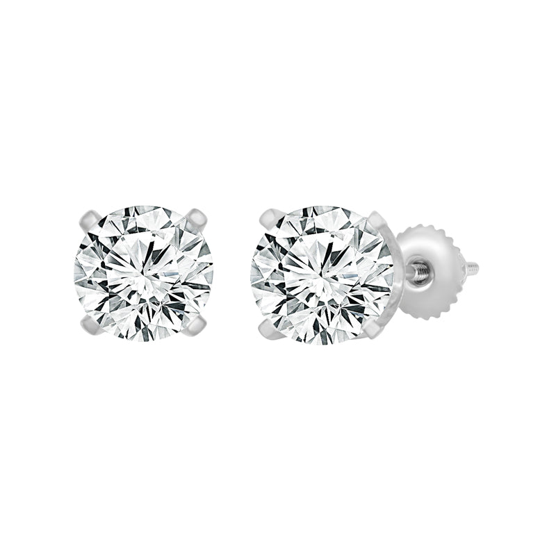 Ladies 14K White Gold Earrings Four (4) prong stud earrings containing round Diamonds having an approximate total weight of 3.41cttw, Color J-K / Clarity SI2
