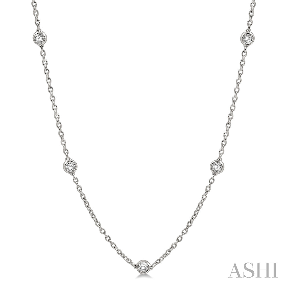 Ladies 14K White Gold Diamond Station Necklace containing Eleven (11) Round Diamonds having an approximate total weight of 1.50cttw. Color H-I/Clarity SI2