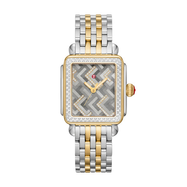Ladies Watch by Michele Deco Vintage Chevron containing round diamonds having an approx total weight of 0.75 , Sapphire Crystal, Stainless Steel Two Tone Band