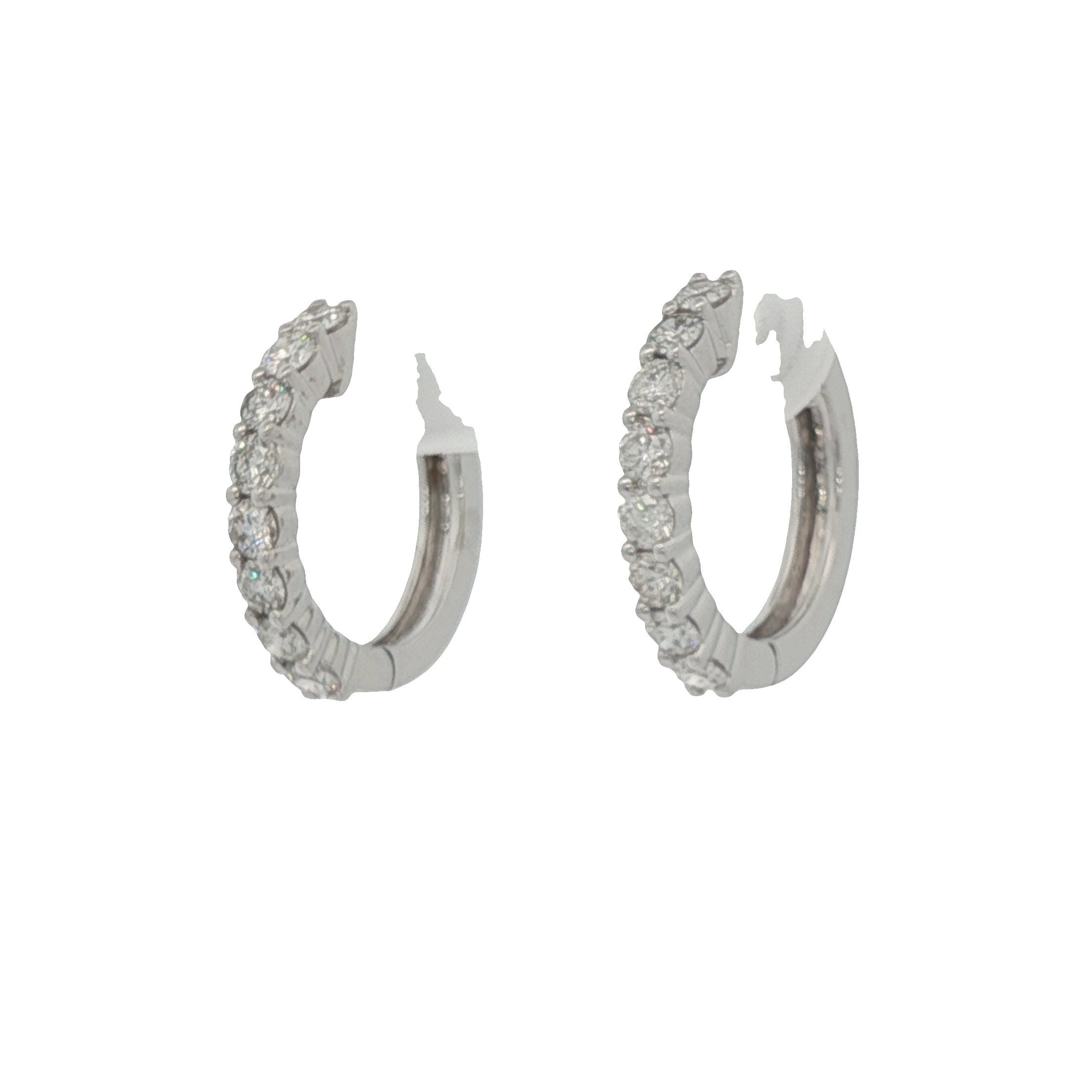 Ladies 14K White Gold Earrings Huggies containing sixteen (16) round diamonds having an approximate total weight of 0.71cttw Color G-H / Clarity SI2-I1