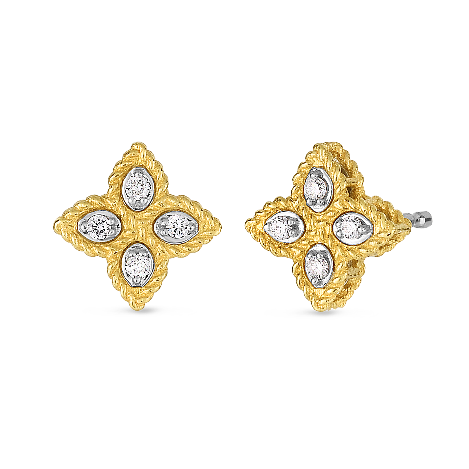 Ladies 18K White and Yellow Diamond Princess Flower Earrings