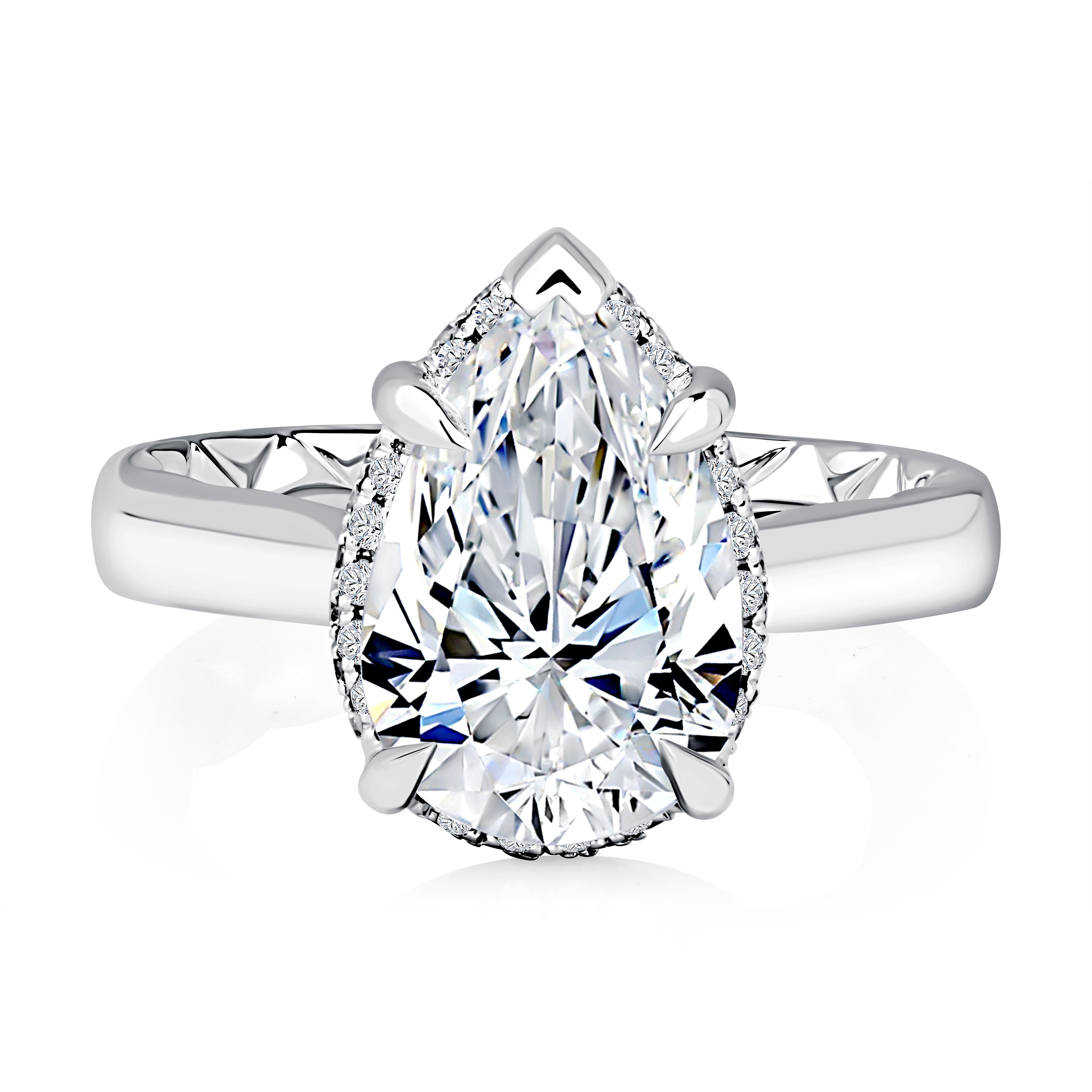 Ladies14K White Gold Solitaire with Hidden Halo Quilted containing Thirty-nine (39) small Round Diamonds having an approximate total weight of .20cttw Color G/Clarity SI