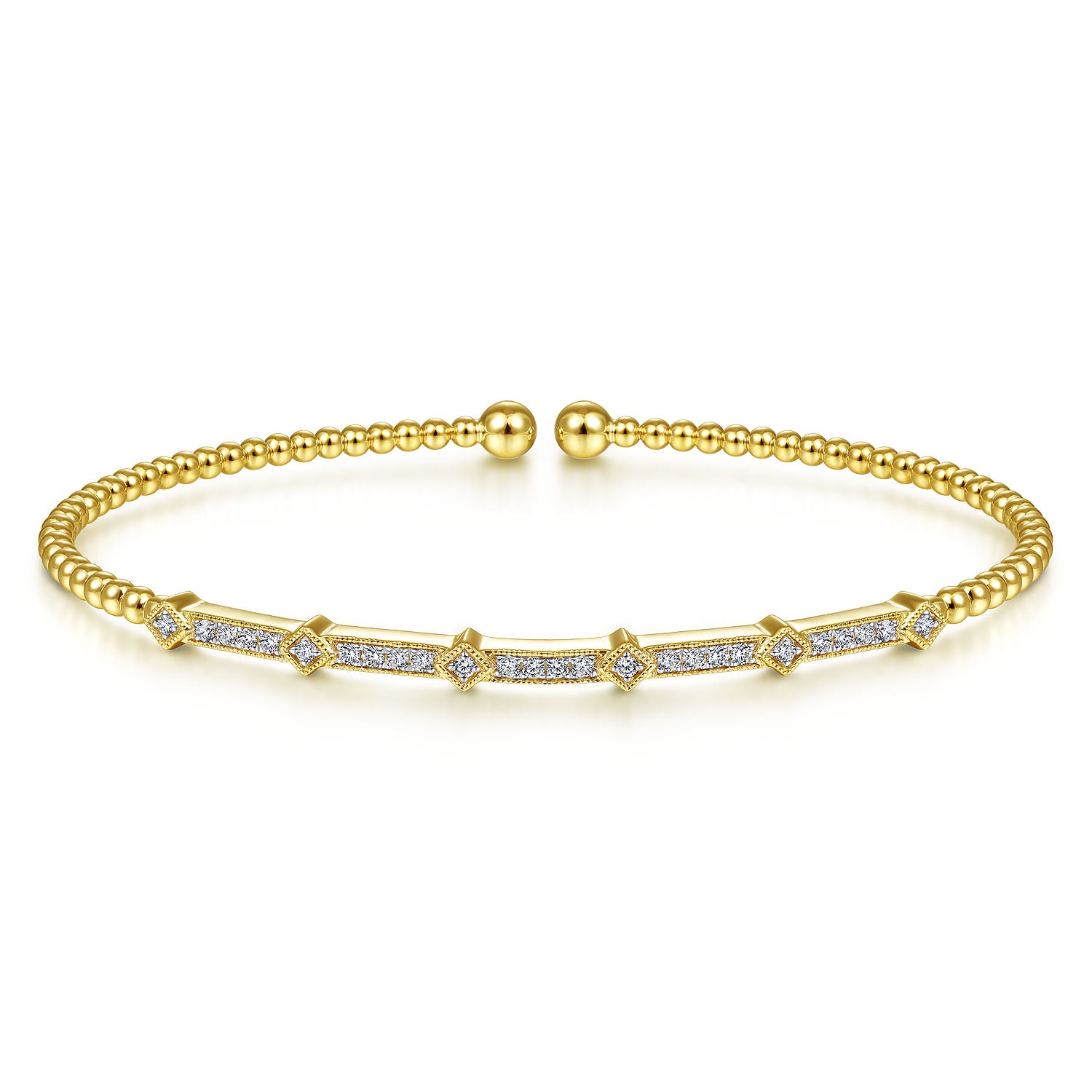 Ladies 14K Yellow Gold Bangle Bracelet Diamond Bujukan containing twenty six (26) round diamonds having an approximate total weight of 0.19cttw Color J / Clarity I1