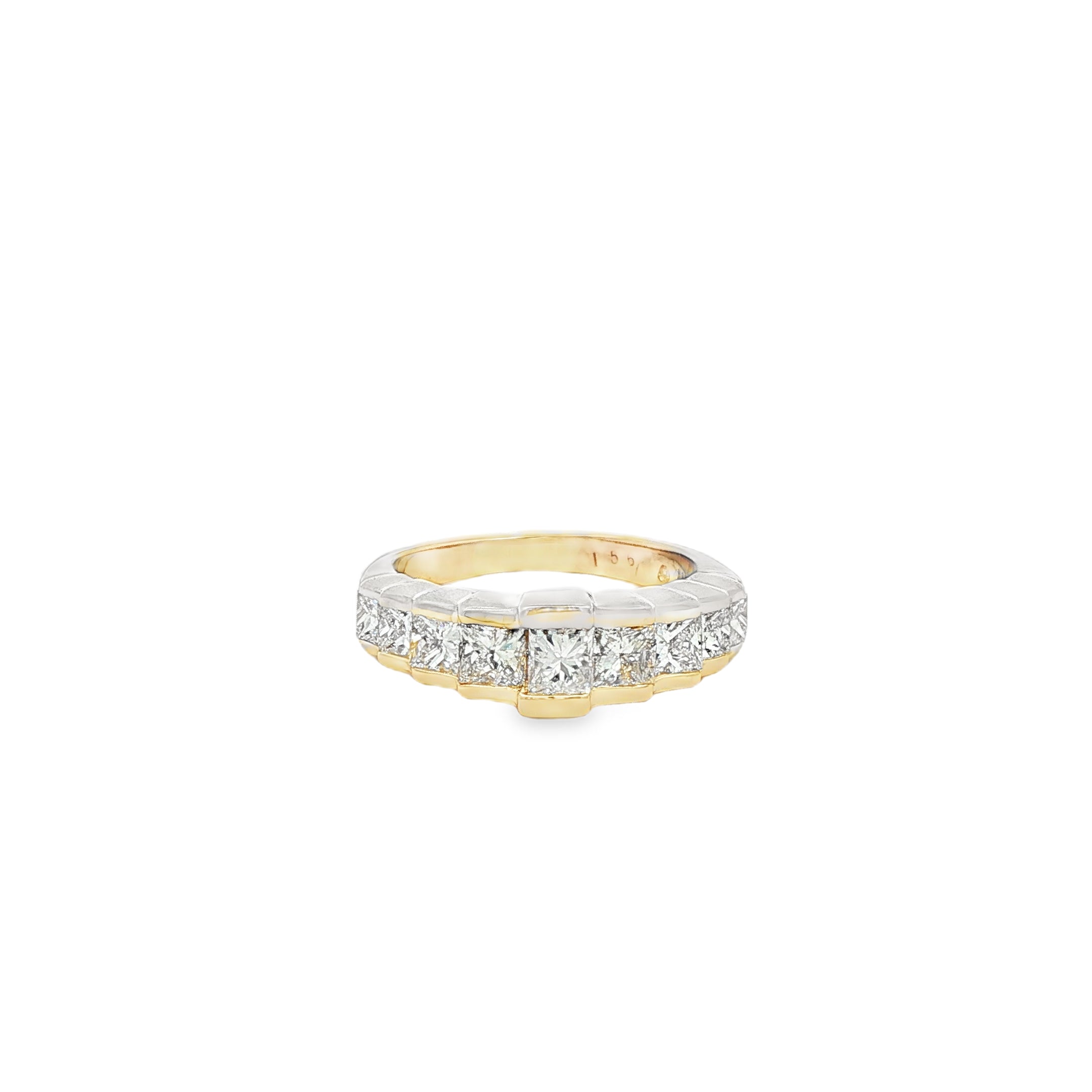 Ladies Preowned 14K Yellow Gold Ring containing nine (9) Princess Cut Diamond having an approximate total weight of 1.00cttw Color H-I / Clarity SI1