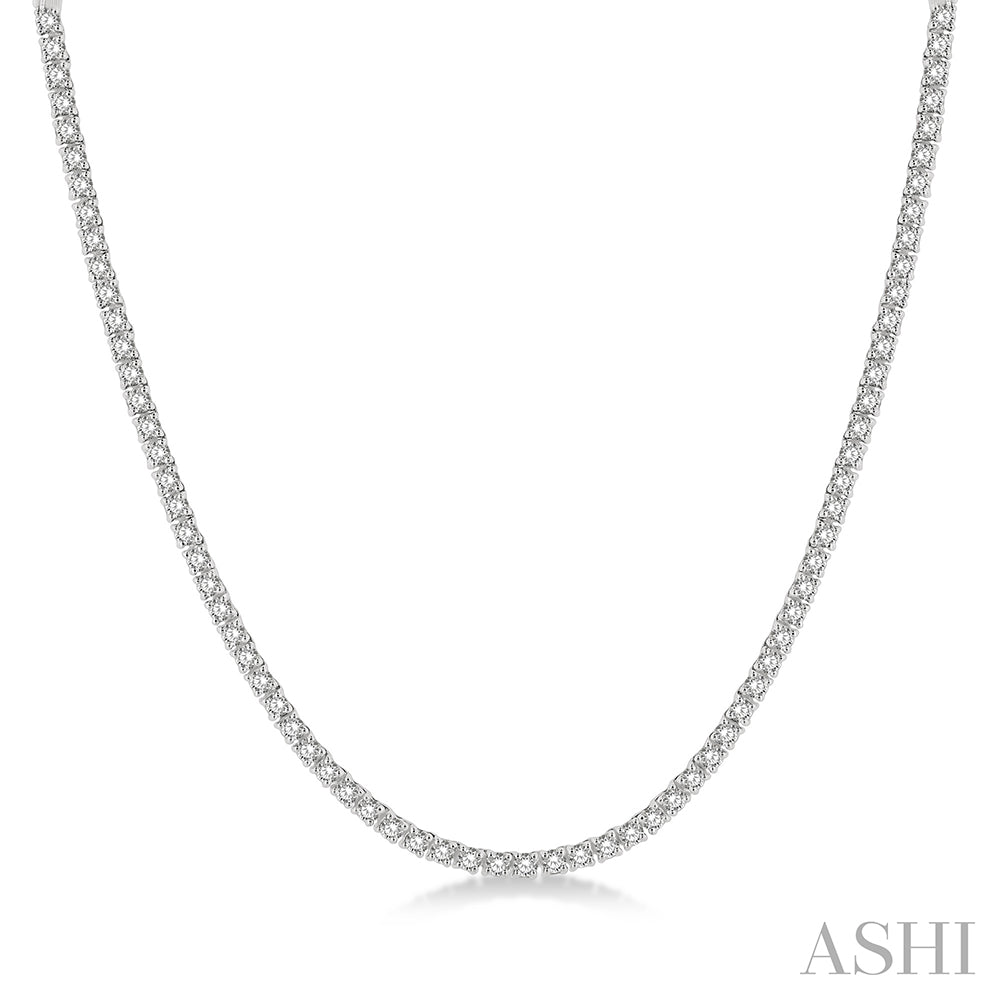 Ladies 14K White Gold Diamond Tennis Necklace containing One Hundred seventy (170) Round Diamonds having an approximate total weight of 5.00cttw Color H-I/ Clarity SI2