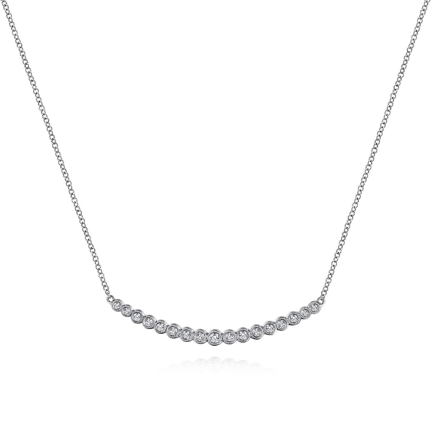 Ladies 14K White Gold Pendant Bar Bezel Set containing seventeen (17) round diamonds having an approximate total weight of 0.25cttw, Color J / Clarity I1