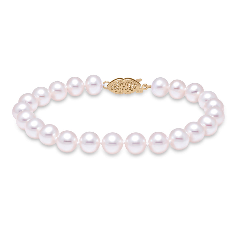 Ladies 14K Yellow Gold Pearl Bracelet 7-7.5mm Fresh Water Pearls A Quality 7